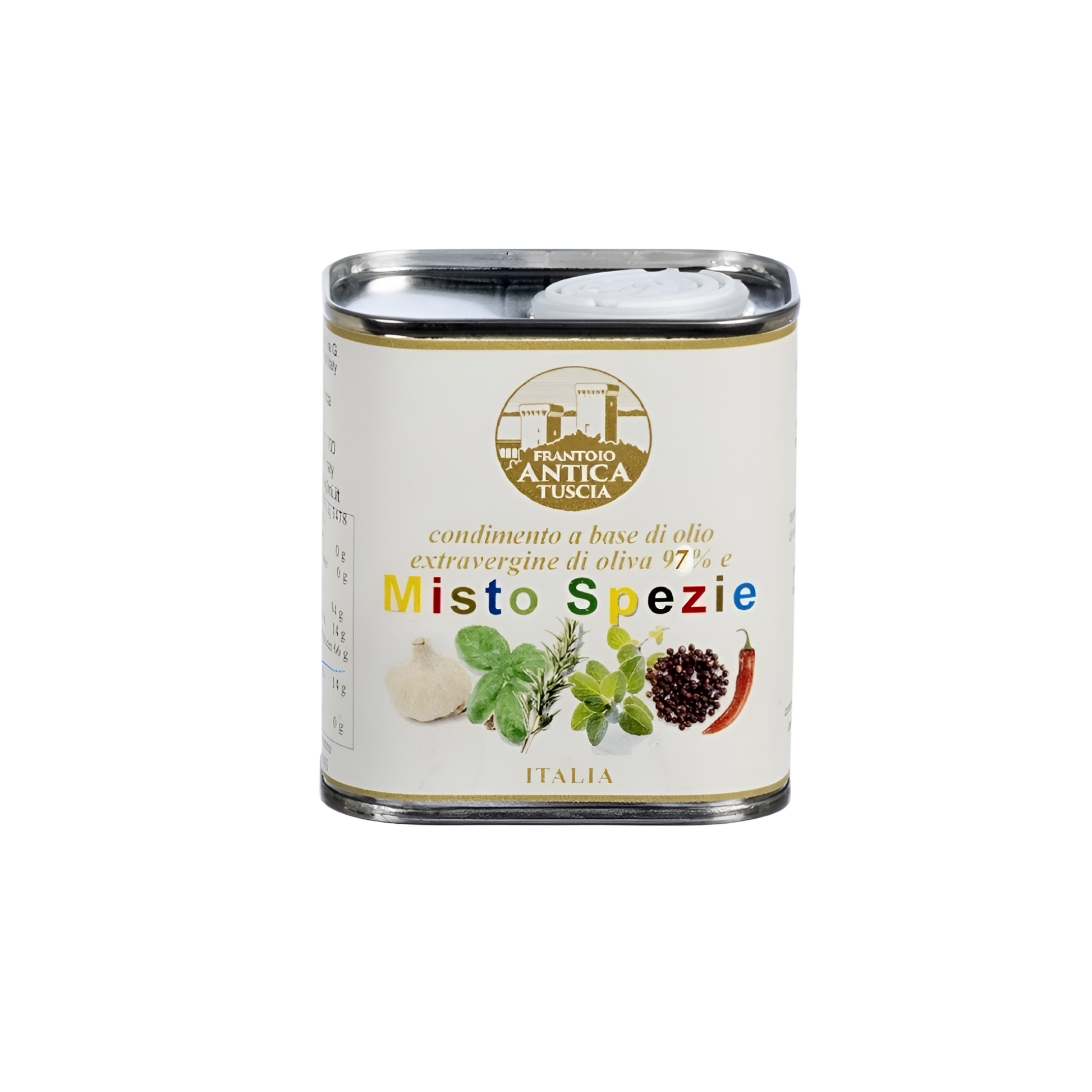 Deze smaakvolle olijfolie is verrijkt met een zorgvuldig samengestelde mix van typisch Italiaanse kruiden: rozemarijn, basilicum, knoflook, tijm, salie, oregano en zwarte peper.